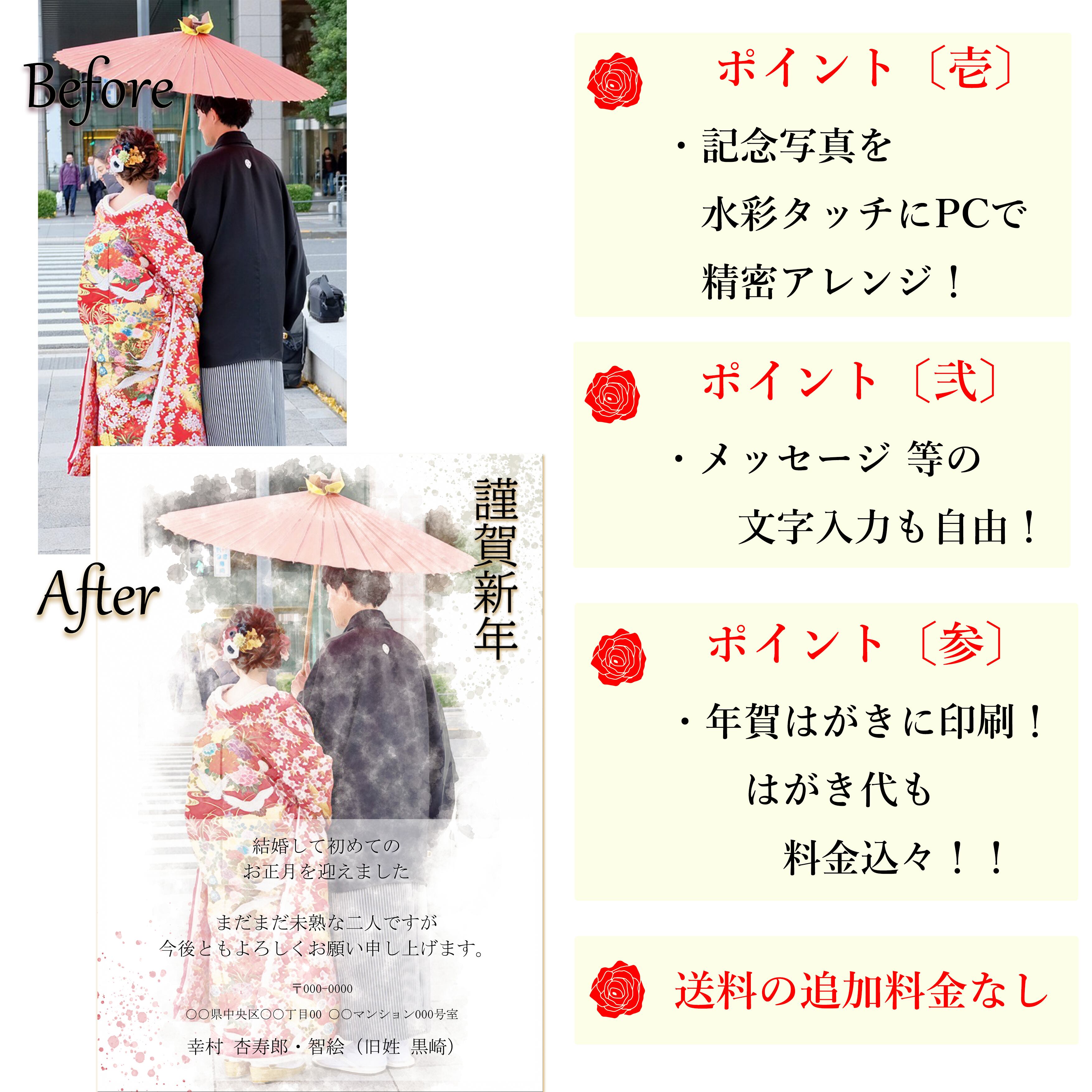 ※年賀状や、結婚挨拶のポストカードなどの場合